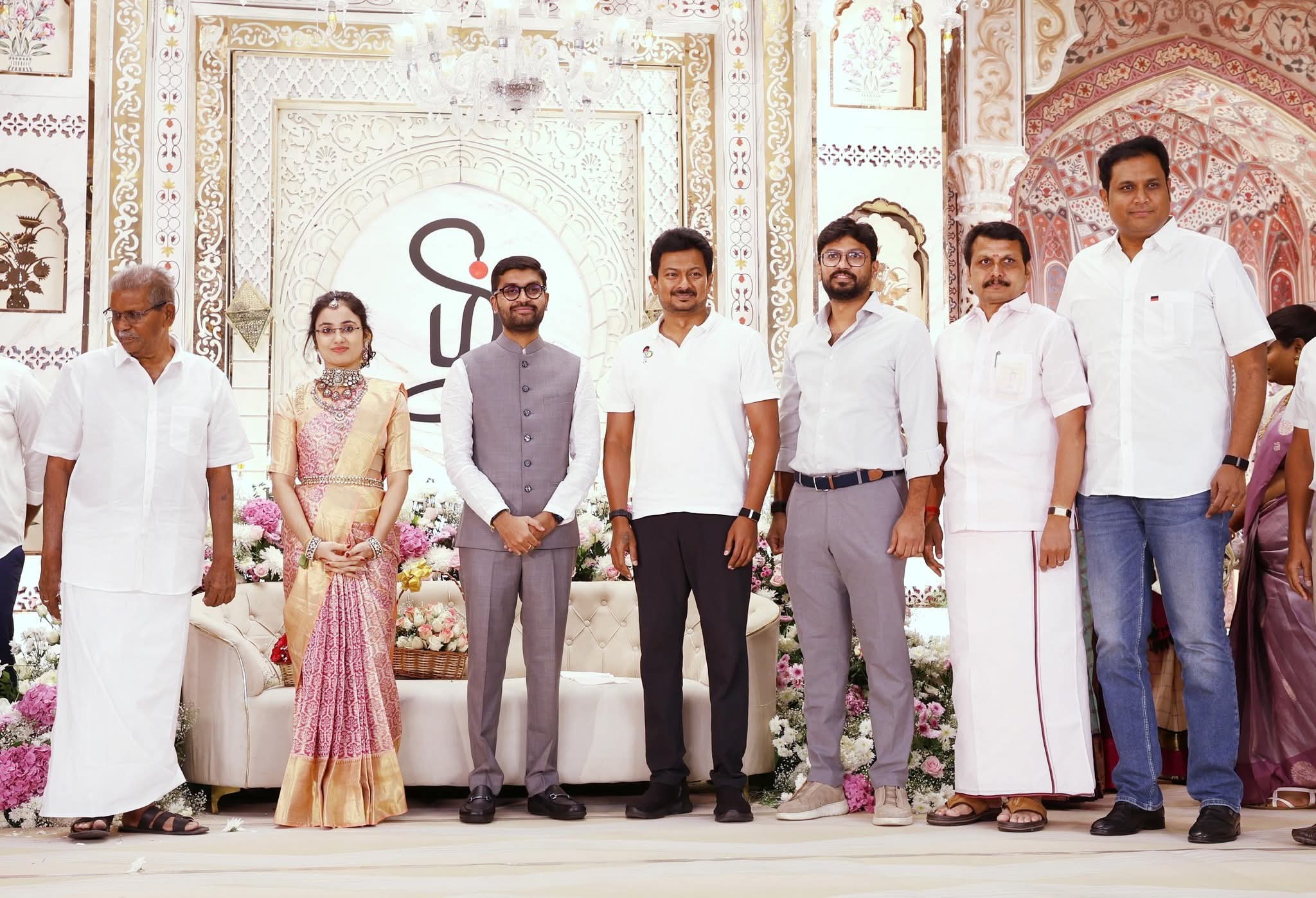 ஈரோட்டில் துணை முதலமைச்சர் உதயநிதி ஸ்டாலின் திருமண வரவேற்பு நிகழ்ச்சியில் பங்கேற்று மணமக்களை வாழ்த்தினார்