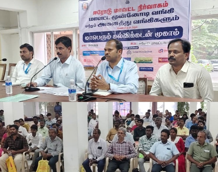 ஈரோடு மாவட்ட ஆட்சித்தலைவர் ச.கந்தசாமி கல்லூரிகளில் பயிலும் மாணவ, மாணவியர்களுக்கான மூன்றாவது சிறப்பு கல்விக் கடன் முகாமில் 49 மாணவ, மாணவியர்களுக்கு ரூ.2.5 கோடி மதிப்பீட்டிலான கல்விக்கடனுதவிகான ஆணைகளை வழங்கினார்.